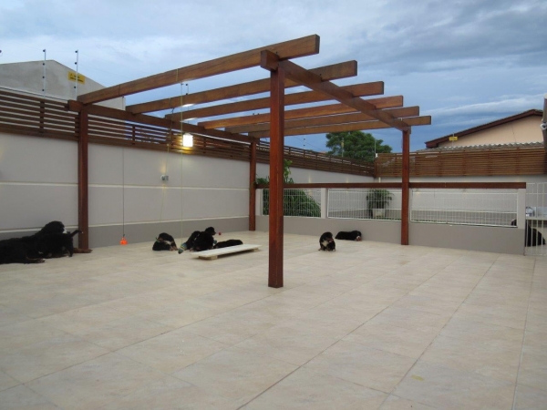O Canil em nossa casa consiste em área coberta, área verde, dormitório, maternidade e berçário, tudo com ar condicionado